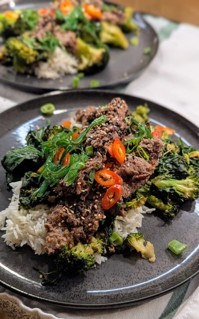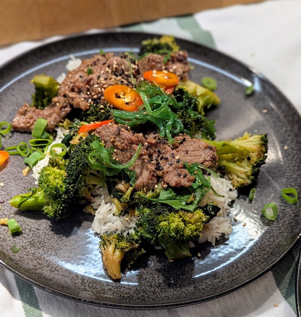 Bulgogi (불고기) ist ein beliebtes koreanisches Gericht, das wörtlich übersetzt „Feuerfleisch“ bedeutet. Es besteht aus dünn geschnittenem, mariniertem Rindfleisch, das auf einem Tischgrill oder einer heißen Platte gebraten wird. Bei uns gibt’s das aus der Pfanne.