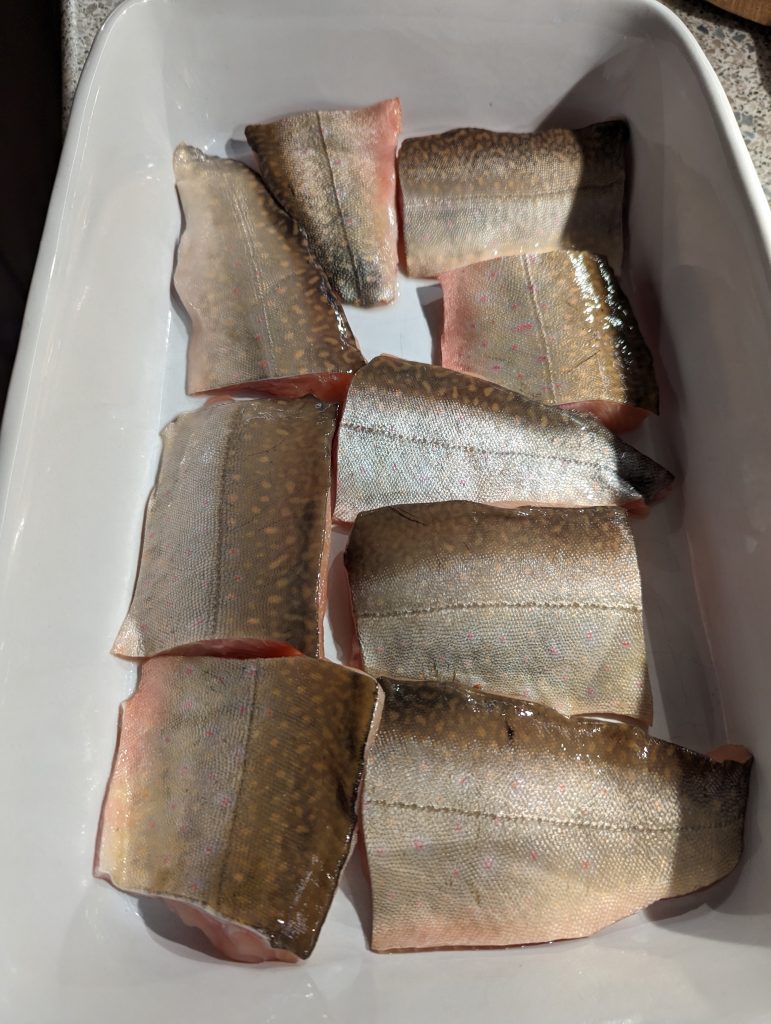 - 4 Saiblingsfilets (ca. 150 g pro Stück), entschuppt und entgrätet