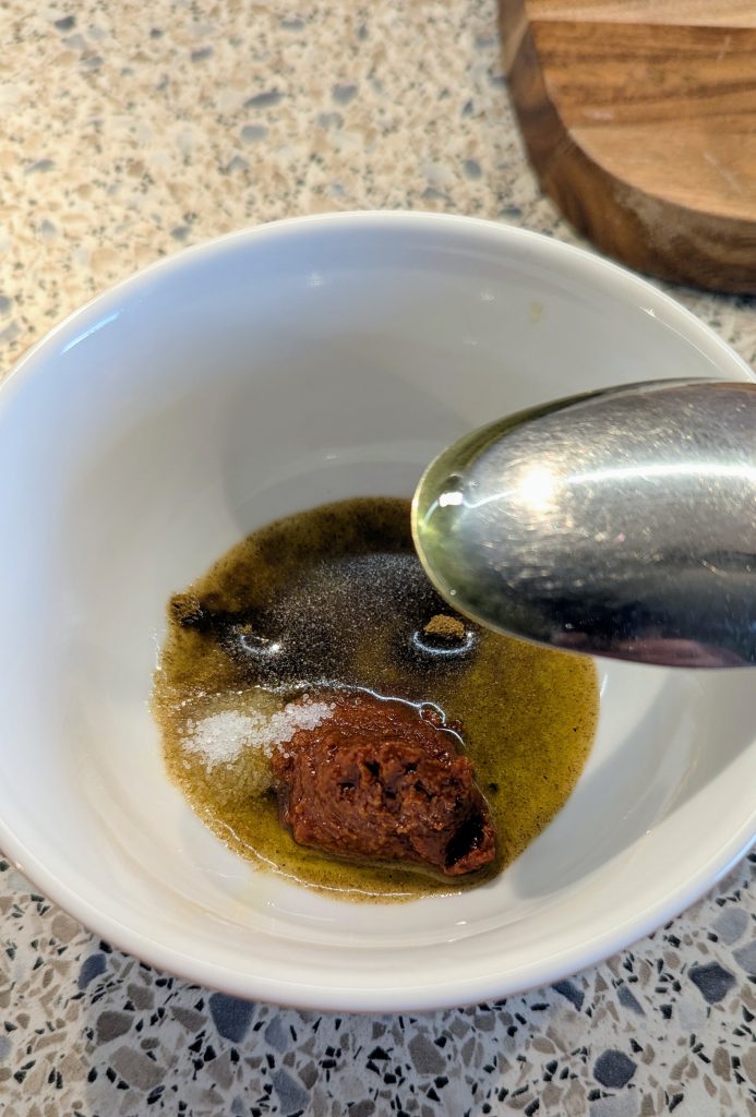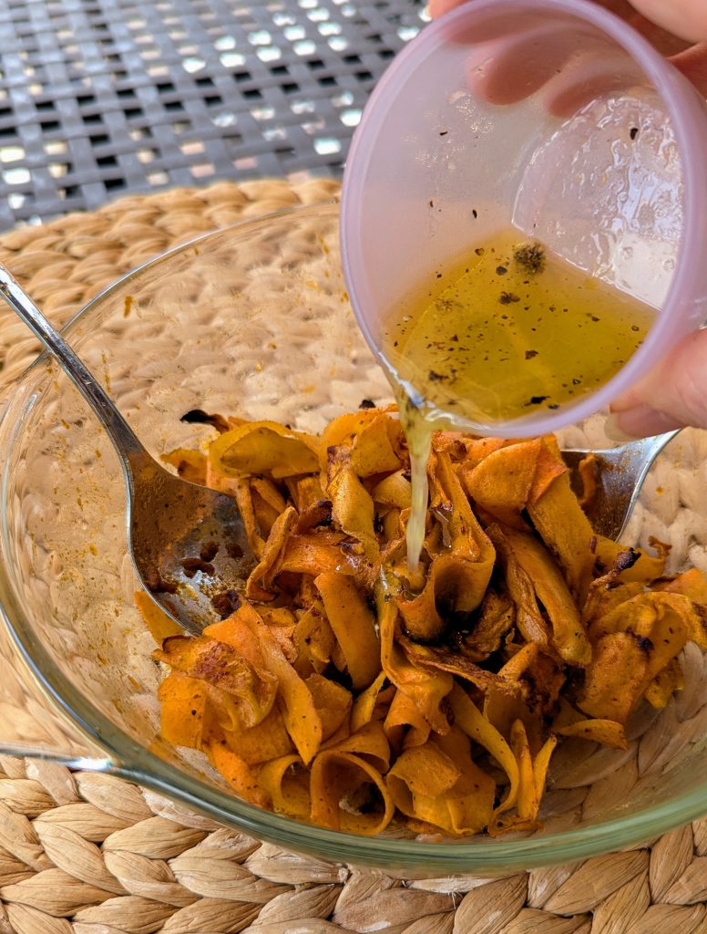 Die Zutaten für das Gewürzöl verrühren und mit den Karotten vermischen.