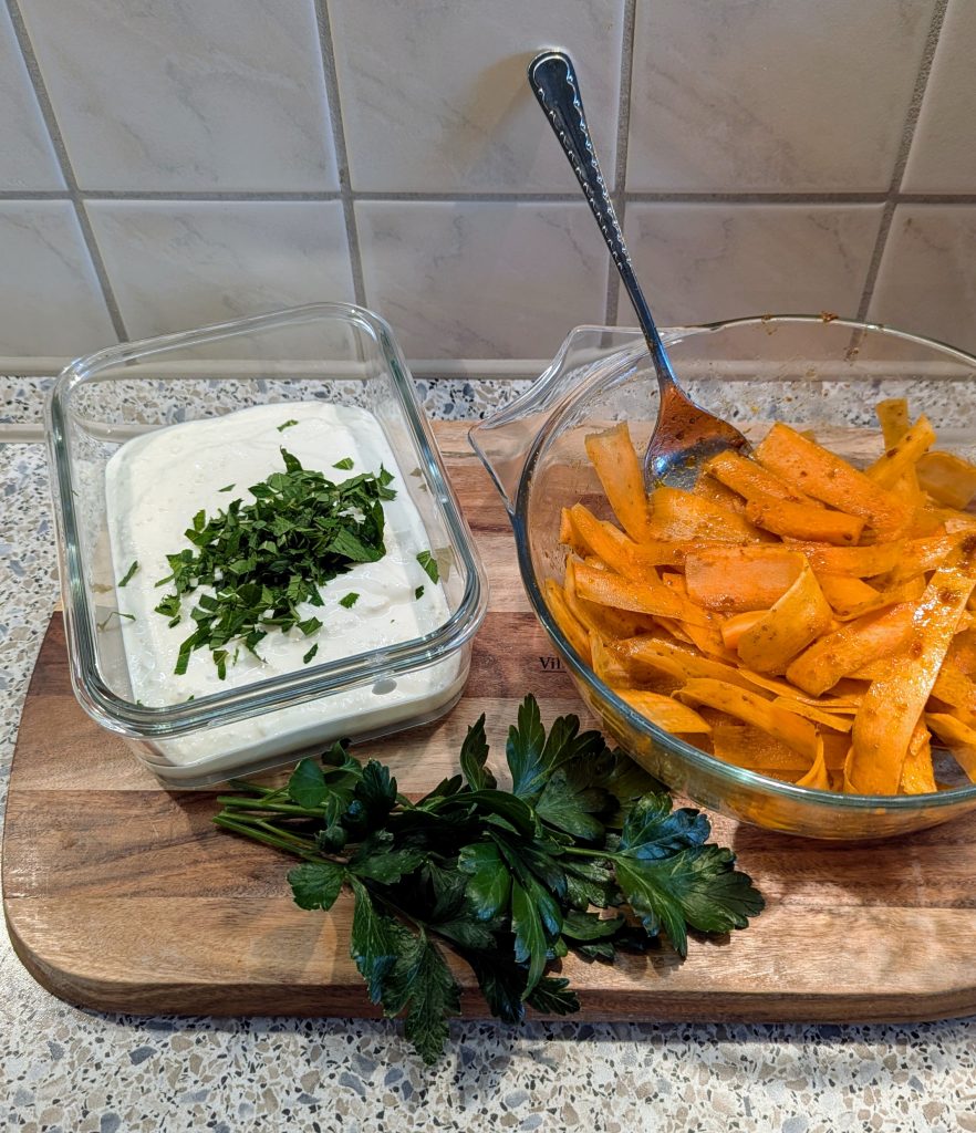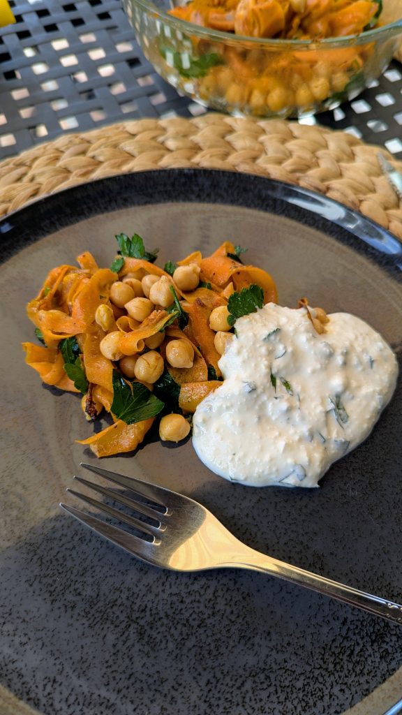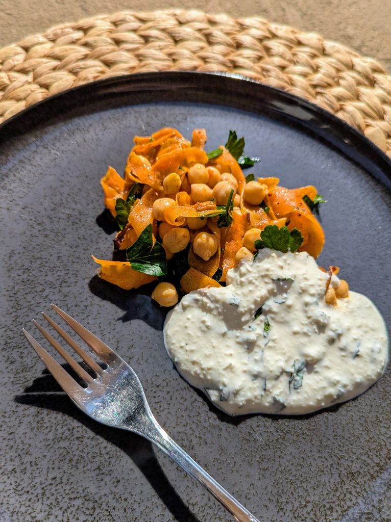 Dieser Salat ist nicht nur einfach zuzubereiten, sondern auch vollgepackt mit Geschmack und Nährstoffen. Die Süße der gegrillten Möhren harmoniert wunderbar mit den herzhaften Kichererbsen und der Frische des Feta-Minz-Joghurts.