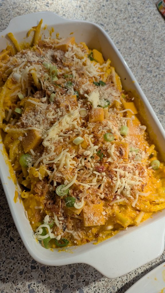 Dieses Gericht ist die perfekte herbstliche Variante des ultimativen amerikanischen Soulfoods. Es vereint die cremige Textur des klassischen Mac ’n‘ Cheese mit dem nussig-süßen Aroma von cremigem Kürbis und ist schnell zubereitet.