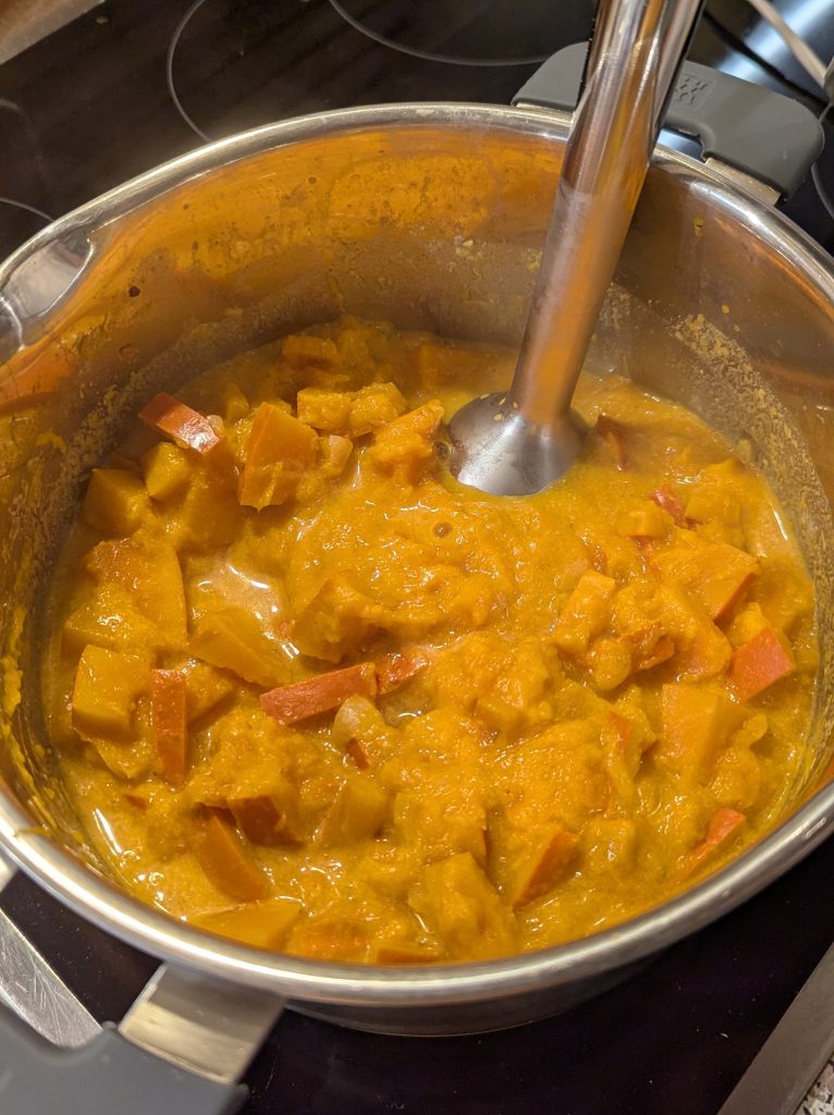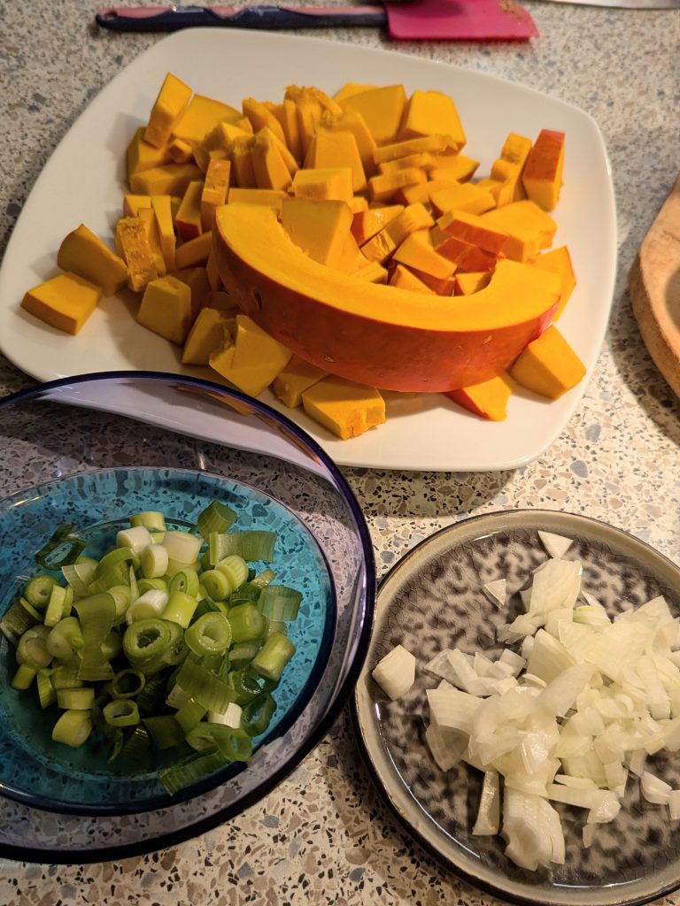 - 500 g Kürbis (z.B. Hokkaido) entkernt und in Stücke geschnitten