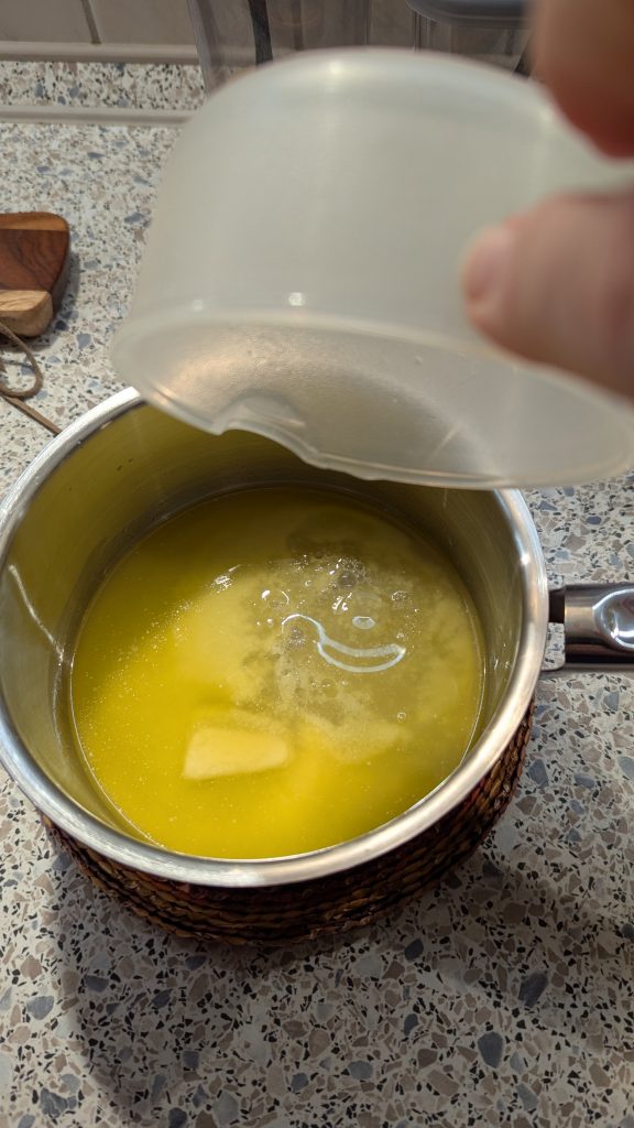 Butter in einem Topf auf dem Herd schmelzen und den Limettensaft unter mischen.