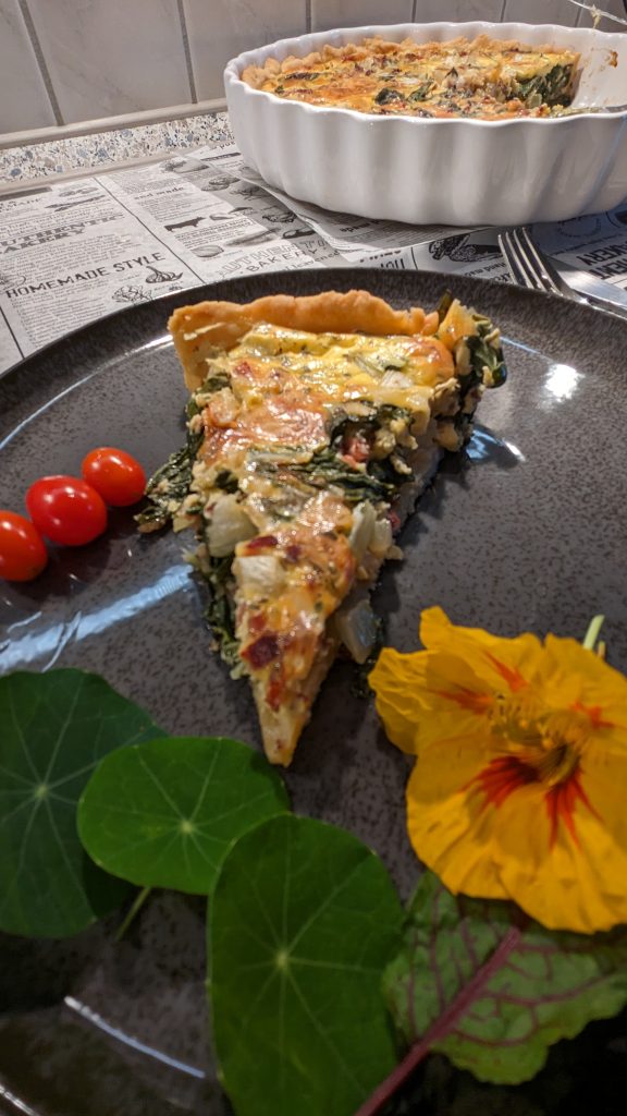 Die Mangold-Tarte etwas abkühlen lassen, bevor du sie anschneidest und servierst. Sie schmeckt warm oder lauwarm am besten.