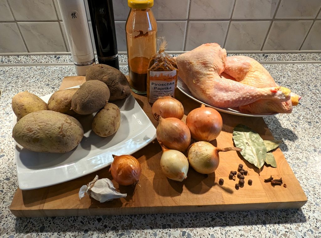 - 2-3 EL Paprikapulver ( ich mische scharf und rosenscharf)