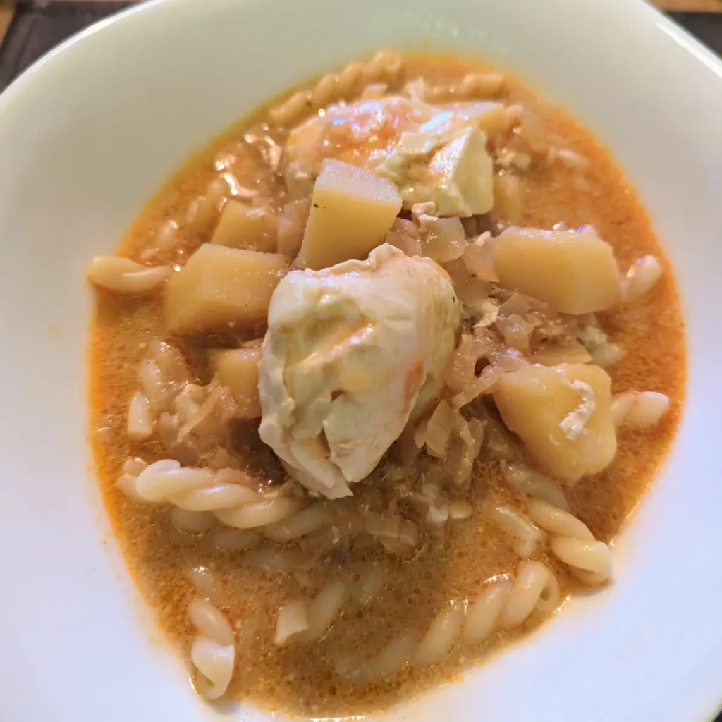 Traditionell gab es dazu gekochte Nudeln, oder selbstgemachte Hefeküchlein. Selbstverständlich kann diese reichhaltige Suppe auch ohne Beilagen gegessen werden.