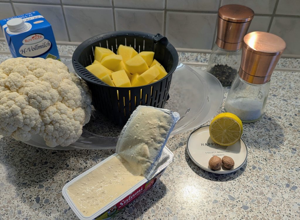 - 200 ml Blumenkohlkochwasser (für den Geschmack!)