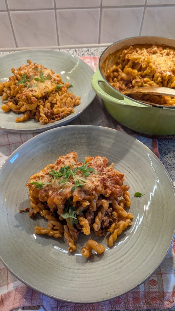 Der cremige und sättigende One-Pot Bolognese Auflauf ist ein wahrer Genuss für alle, die deftige Aufläufe lieben. Dieses Gericht vereint die herzhafte, aromatische Bolognese-Soße mit al dente gekochten Nudeln, gekrönt von einer goldbraun überbackenen Käseschicht und alles in einem Topf.