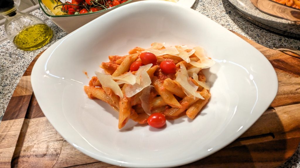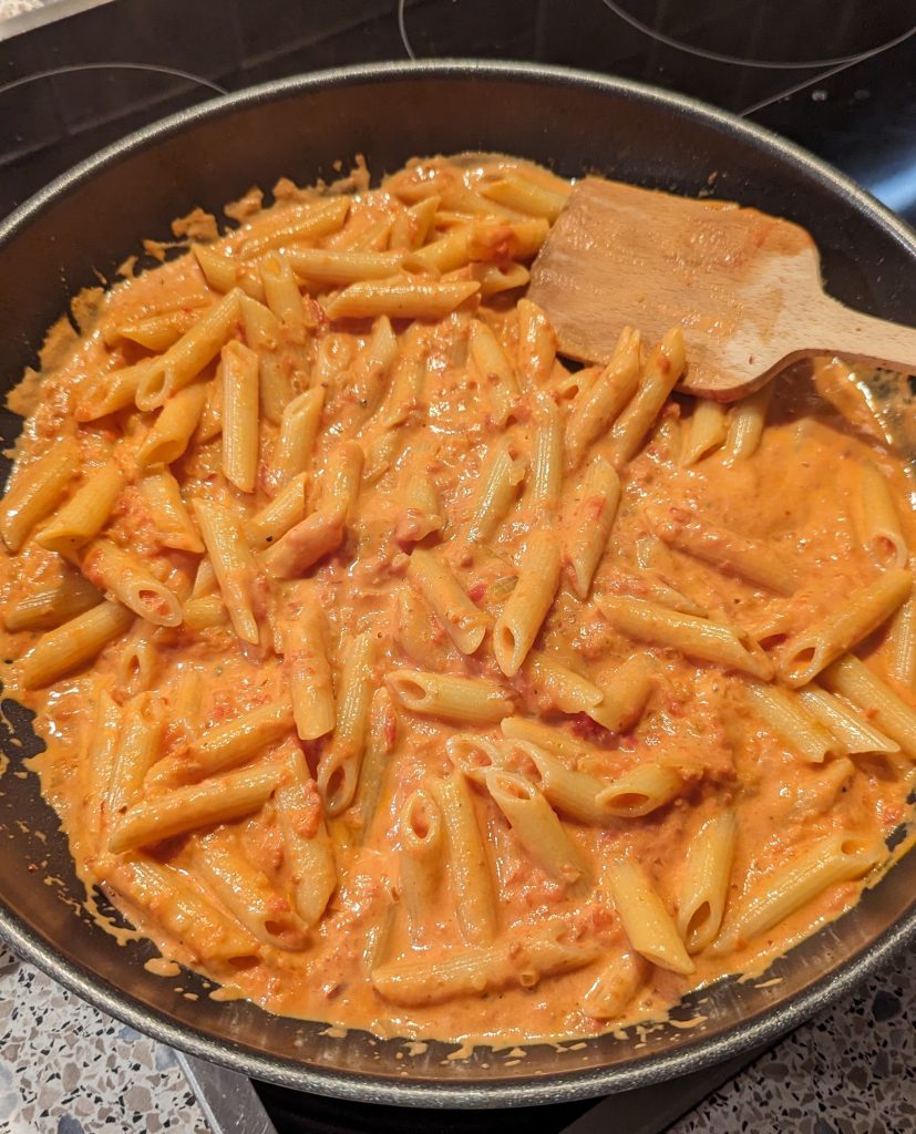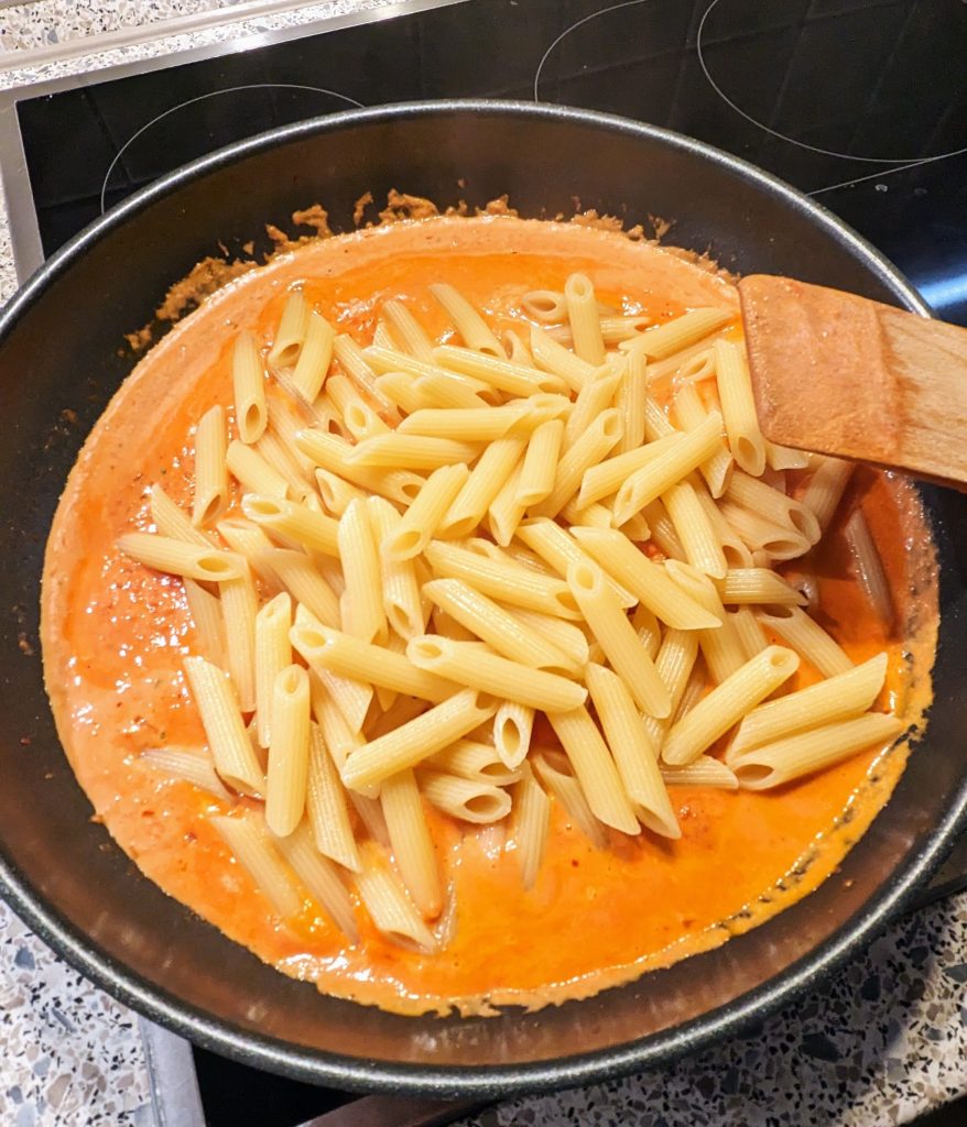 Geschmackliche Tiefe: Der Vodka sorgt für eine besondere Note und rundet das Geschmacksprofil ab. Ein Gericht, das sowohl anspruchsvolle Gaumen als auch Pasta-Liebhaber begeistert.