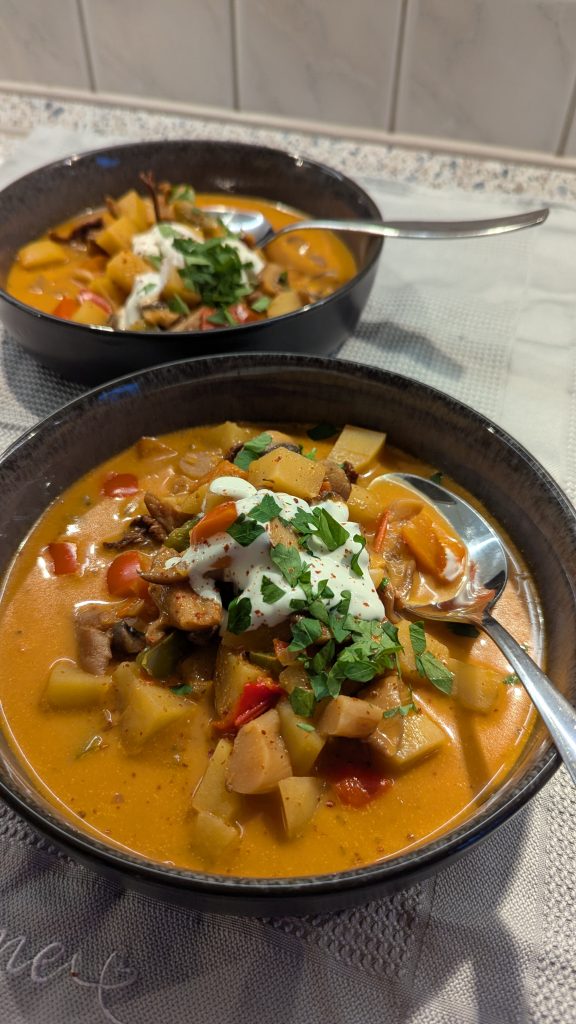 Lust auf Soulfood? Meine Pilzgulasch-Suppe kombiniert erdige Aromen mit feiner Paprikasüße und sämigen Kartoffeln. Ein einfaches, vegetarisches Rezept, das beweist, wie herzhaft fleischlose Küche sein kann!