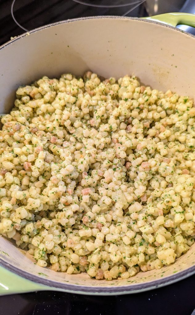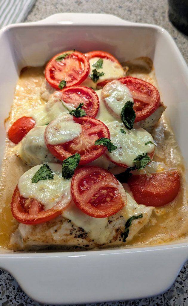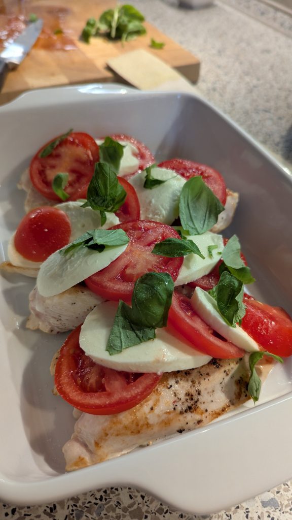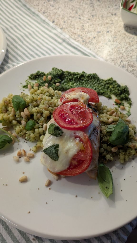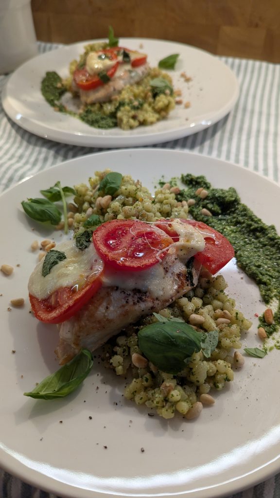 Putenfilet Caprese mit Fregola und Bärlauch Pesto