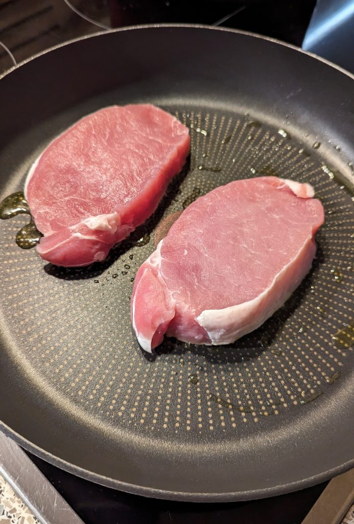Schweinerücken für ca. 6 Stunden im Kühlschrank in eine Salzlake legen. Dazu 1l Wasser mit 40g Salz verrühren und dies über das Fleisch gießen.