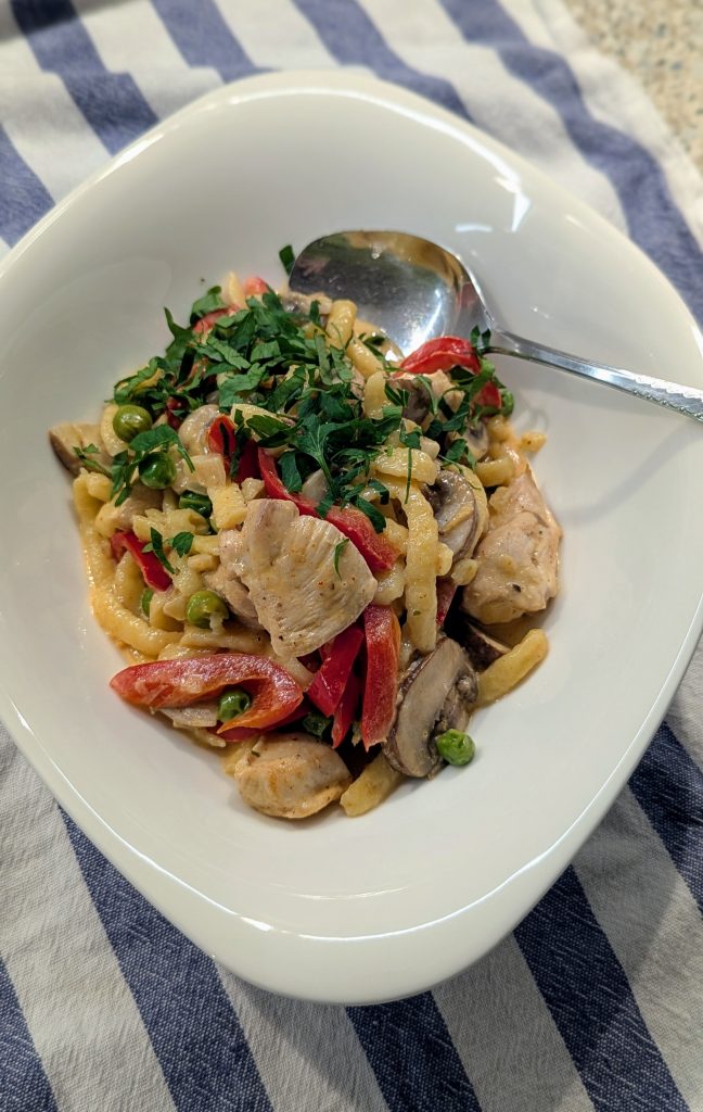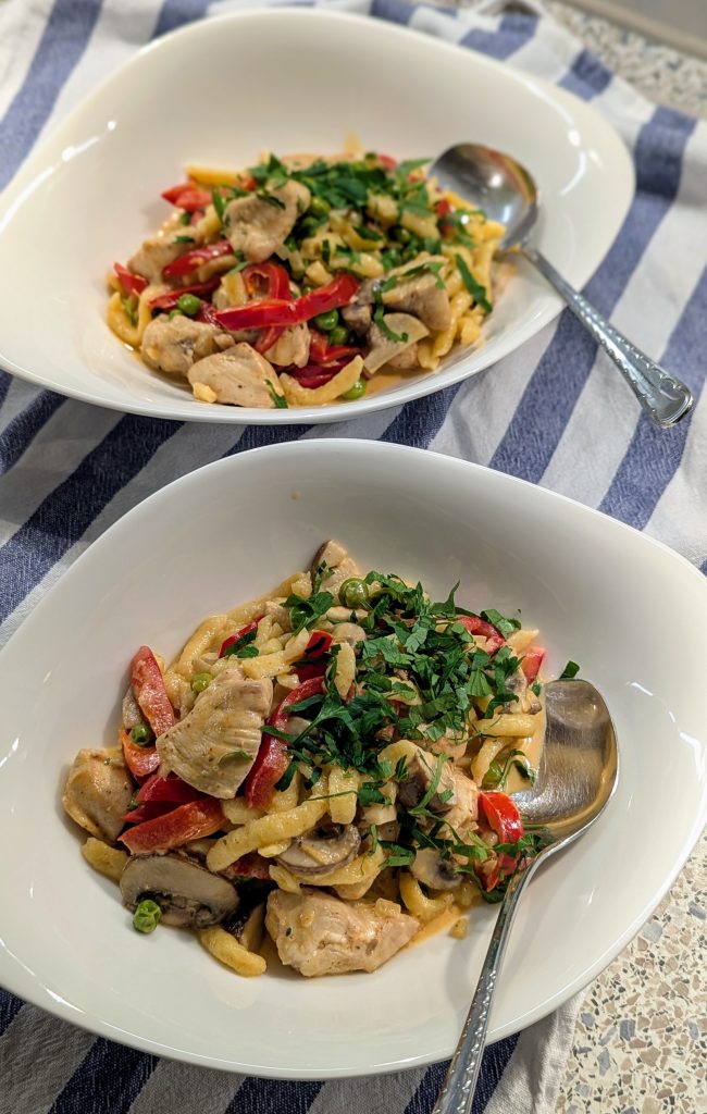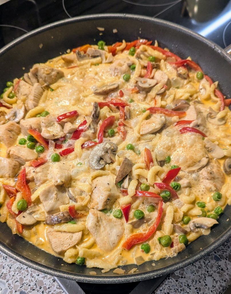 Diese Spätzlepfanne ist das perfekte Gericht, wenn es schnell gehen muss, aber trotzdem richtig gut schmecken soll. Saftige Spätzle, Gemüse und würzige Aromen vereinen sich zu einem echten Wohlfühlessen. Ob als schnelles Mittagessen oder gemütliches Abendessen.
