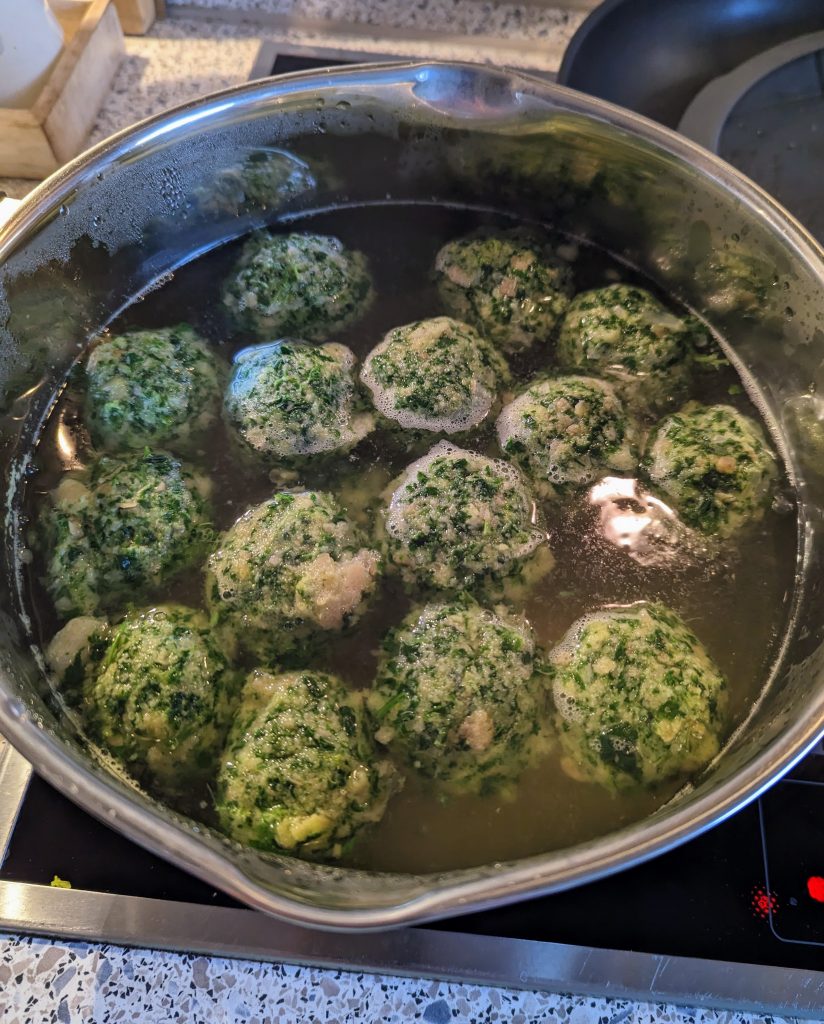 Tipp: immer erst einen Probeknödel machen, um zu sehen, dass er sich nicht im Wasser auflöst!