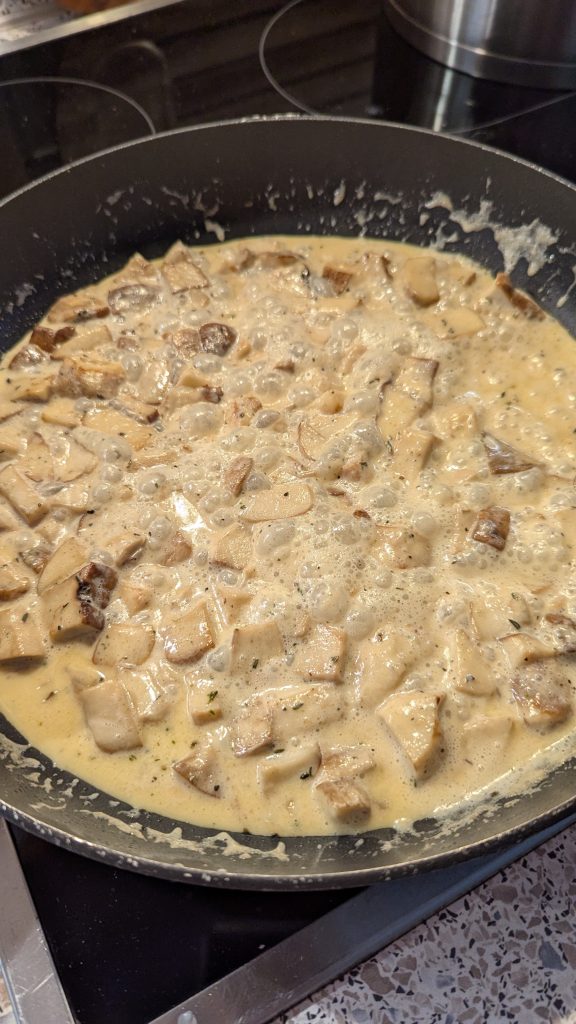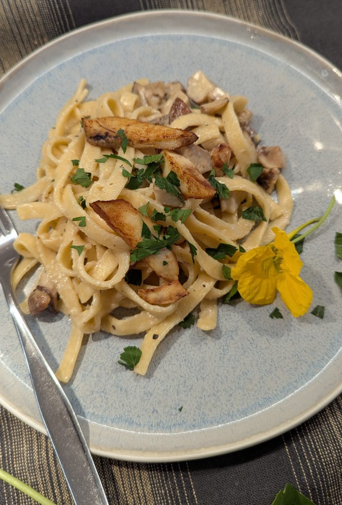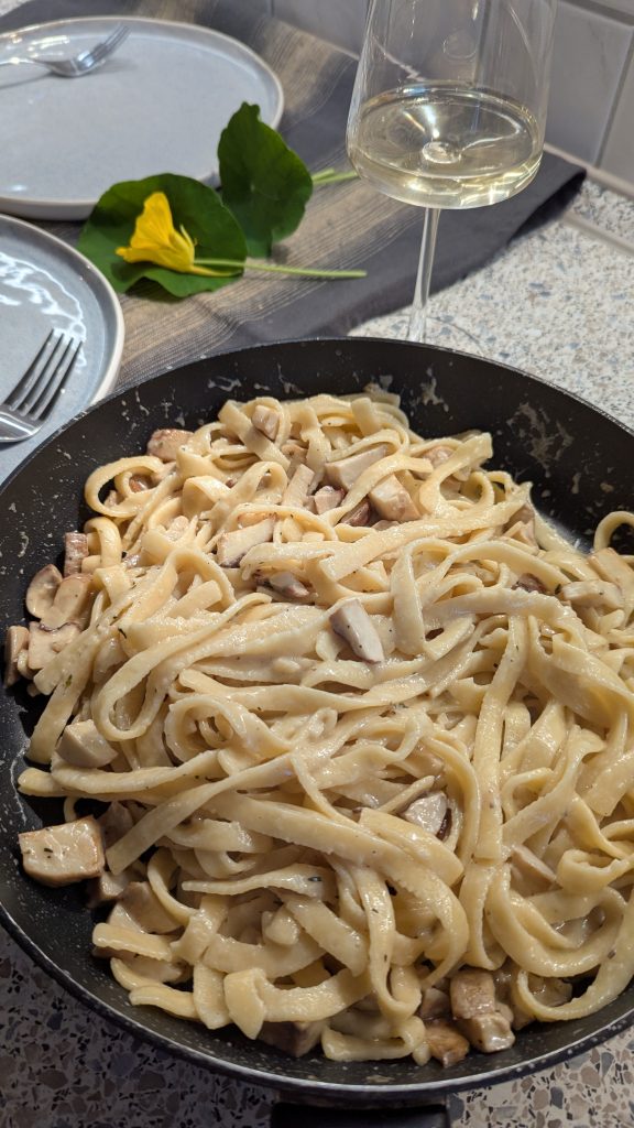 Dieses Rezept ist ein wahres Fest für alle Liebhaber der Waldpilze. Die sämige und aromatische Sauce, die in kürzester Zeit zubereitet ist, umhüllt die frischen Tagliatelle perfekt. Das intensive Aroma der Steinpilze wird durch Knoblauch und Petersilie verstärkt. So entsteht ein herzhaftes und gleichzeitig elegantes Gericht, das sich perfekt für ein schnelles Abendessen unter der Woche oder für einen besonderen Anlass eignet.