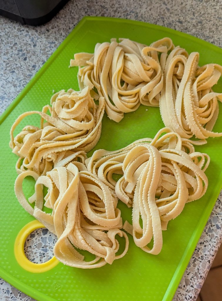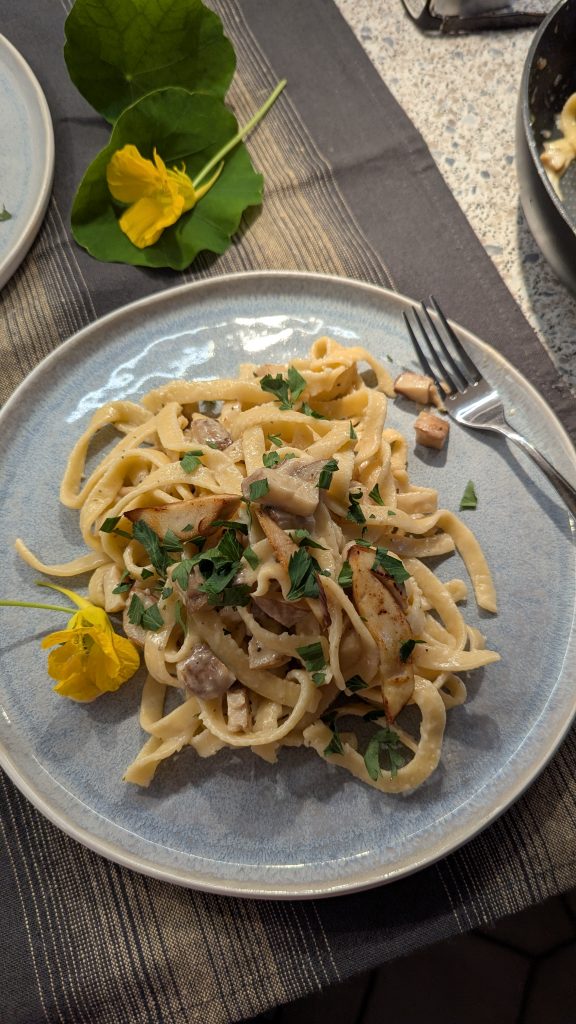 Frische Tagliatelle sind die beste Wahl, da sie eine feinere Textur haben und die Sauce besser aufnehmen.