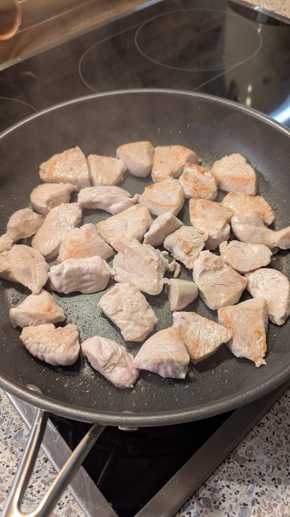 - Alternativ: 250 g Hähnchenfleisch in mundgerechten Stücken