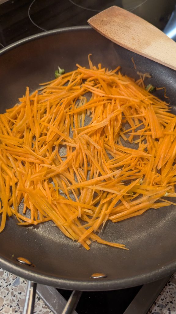 Karotten 2-3 Minuten in der Pfanne schwenken und aus der Pfanne nehmen.